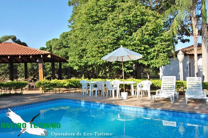 Estrutura: Sala de estar com tv, ampla área de lazer com piscina e salão de refeições onde são servidos os mais variados pratos da deliciosa cozinha típica pantaneira.