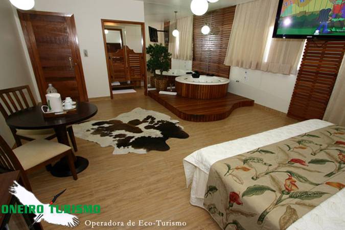 Estrutura: Sala de ginástica, Bar, Bar na piscina, Copa 24 horas, Restaurante, Área para eventos e convenções, Business center, Sala de reuniões, Cachoeira, Jardim, Rio, Piscina, Churrasqueira, Hidromassagem, Sala de massagem, Sala de TV/DVD, Sala jogos