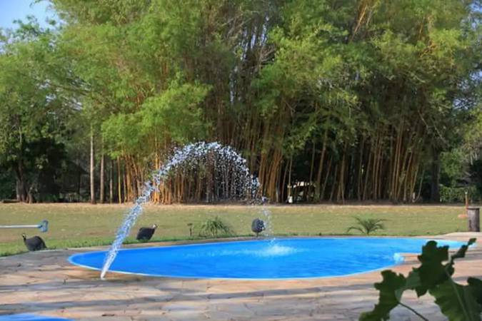 Estrutura: café da manhã ou pensão completa, piscina, bicas para banho, quadra de vôlei, churrasqueira, bar na piscina equipado para servir drinks, bebidas e lanches, trilha com área de descanso, redes e banco, à beira do Rio Aquidauana.