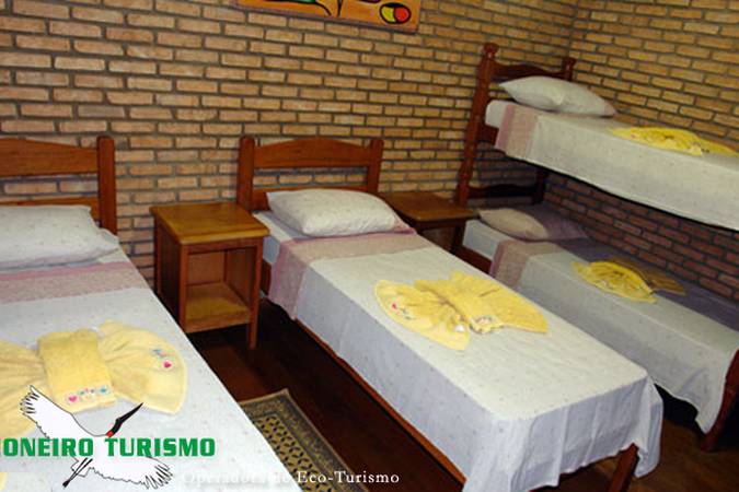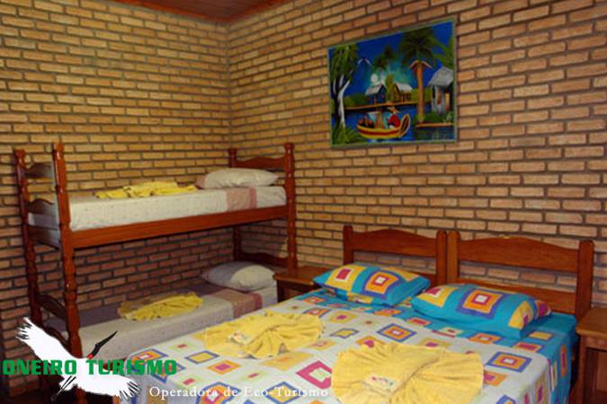 E possui 4 apartamentos com capacidade para 4 pessoas cada um. Eles são beira-rio e mais simples que os chalés, equipados com ar-condicionado, telefone e banheiro privativo com água quente.