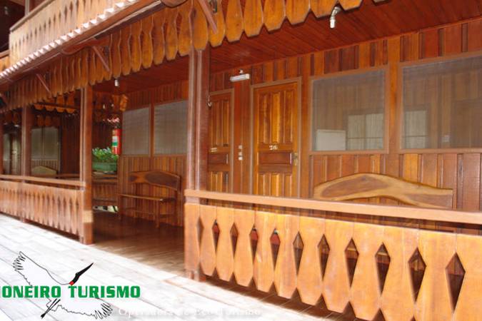 Estrutura: camping, lavanderia, serviço de quarto, restaurante, translados, guias locais bilíngues, suporte para pesca esportiva. Oferece ainda caminhadas pelas passarelas elevadas, pescaria de piranhas, passeios fluviais, passeios de canoa canadense, focagem noturna de jacarés, passeios de bicicleta pela Estrada Parque e safári fotográfico.